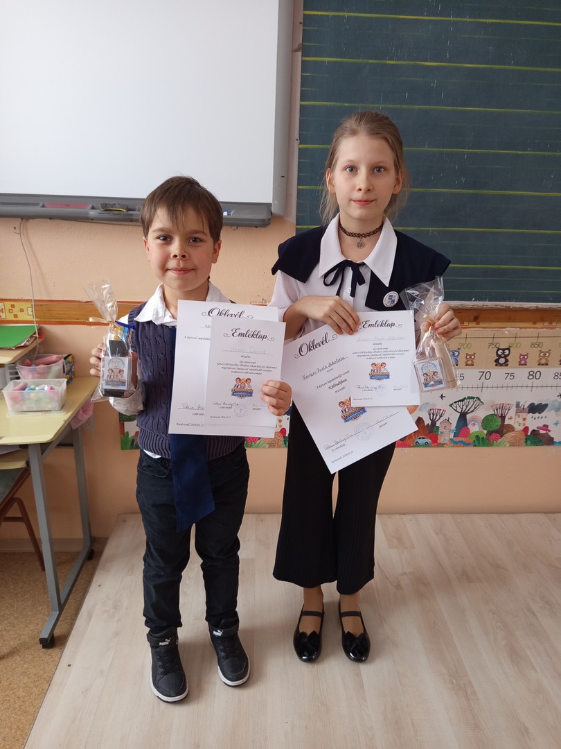 2026. január 22-én iskolánk 3 tanulója részt vett a karácsondi Gönczy Pál Katolikus Általános Iskola által szervezett alsó tagozatos énekversenyen: Vincze Dániel (2.b), Kovács Frida Nikoletta (4.a), Birnbaum Kincső (4.b)